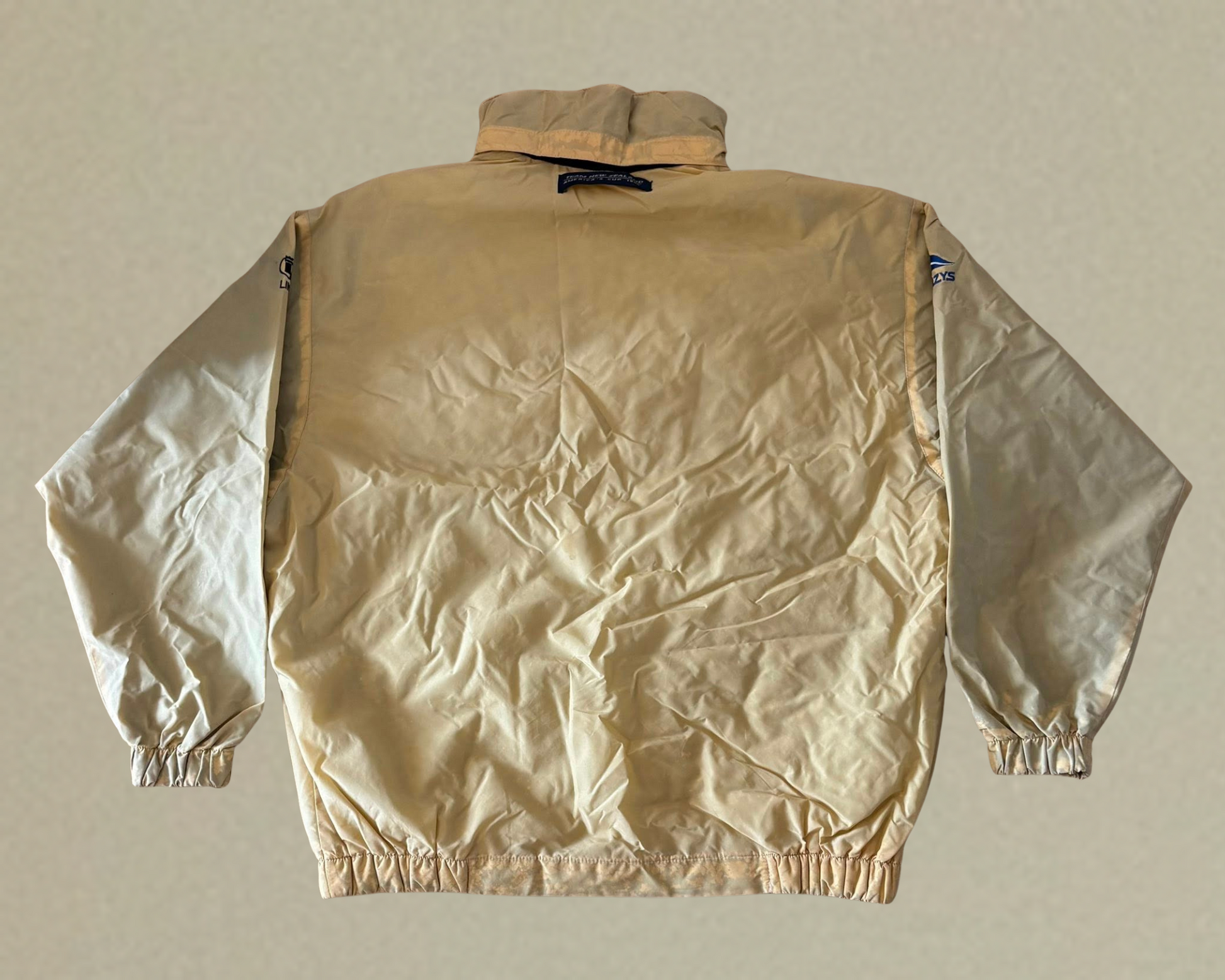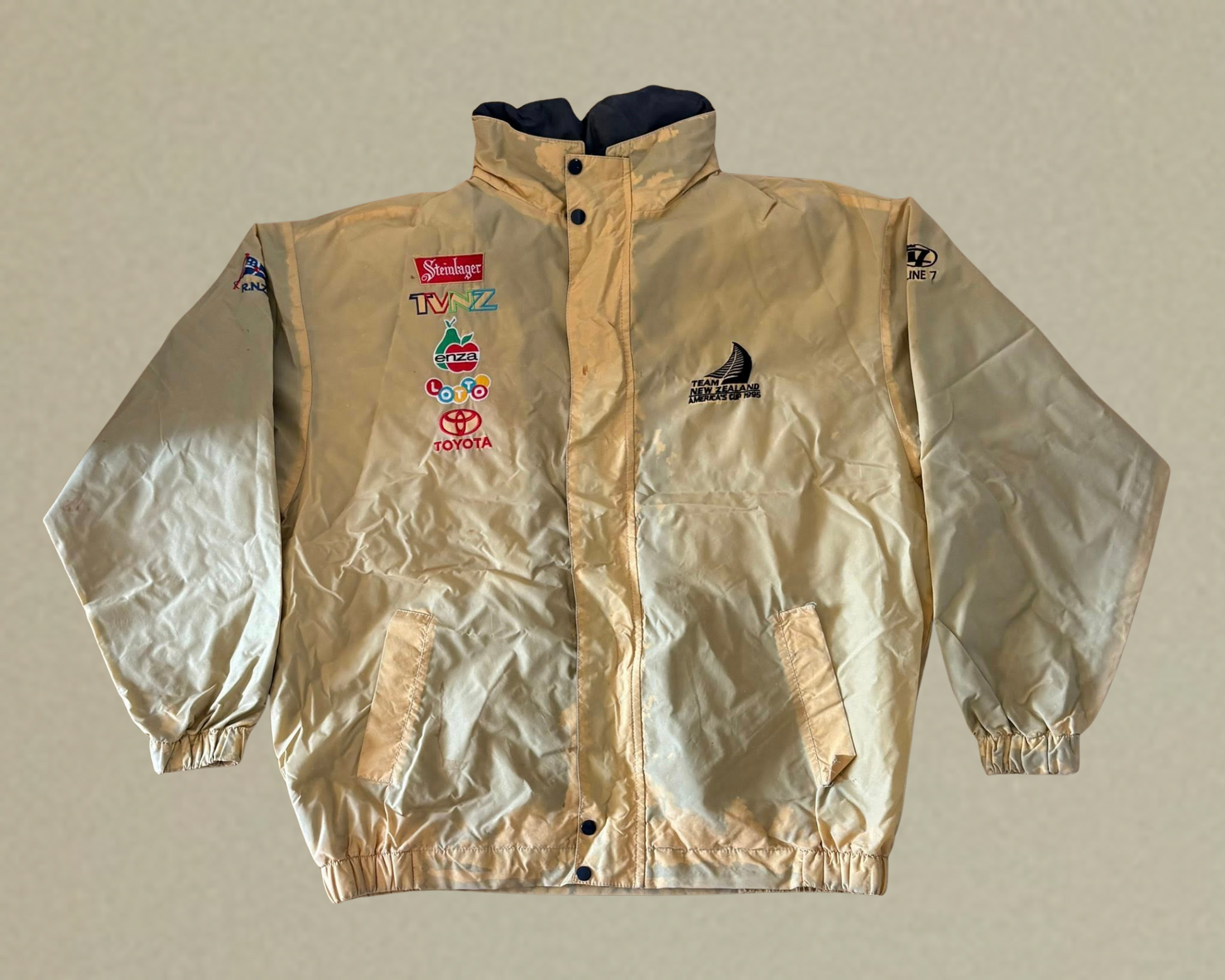 The yellowish-beige kit from Team NZ's successful 1995 campaign are iconic. Featuring a host of equally as iconic kiwi brands on the chest as sponsors this is a great bit of kit. Unfortunately showing a little bit of discolouration from the internal lining deteriorating over the last 30 years, however don't let that put you off this doozy of a jacket.